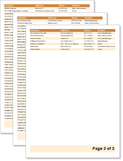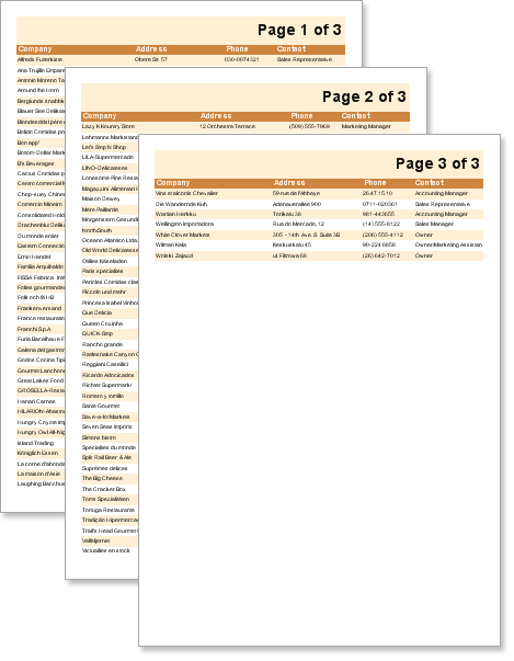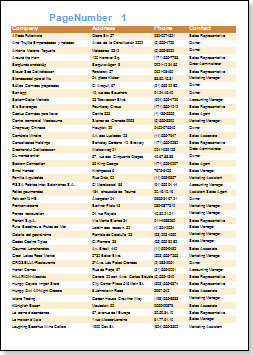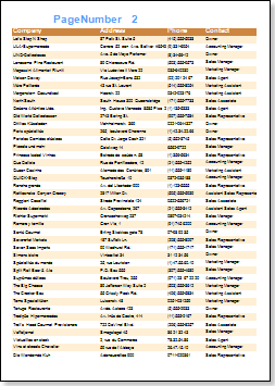 At this point, run the report. Notice the page number is printed at the bottom of each page and that data fields have populated down the pages.