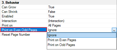 There are three values available for the PrintOnEvenOddPages Property: