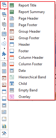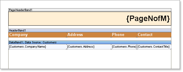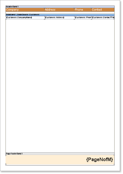 Page bands are a vital component for report creation. Generally, they are used to output things like company address, contact information, copyright notices, page numbering, etc.. Report Designer has three types of page bands: Empty Data, Page Footer, and Page Header.