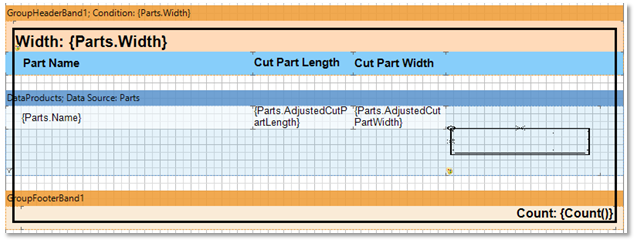 Figure 02 features an example of the Horizontal Line primitive in the Report Template. This line is placed on an empty footer band and used to separate the groups within the report visually.