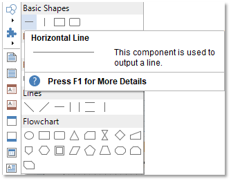 Primitives in the Report Designer are lines and shapes that augment reports and help to highlight data. Primitives include Shapes and Horizontal Lines. Cross-primitives include Rounded Rectangle, Rectangles, and Vertical Lines.