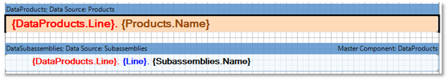 Using the Line property of the Data band is beneficial when there needs to be numbering for two different bands in one expression. For example, inserting the following expression on the Detail band results in the line number of the Master band being displayed alongside the number of the row in the Detail band: