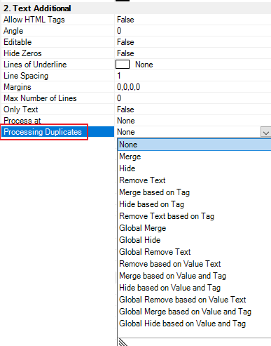 Fig. 18 – Text Additional > Processing Duplicates Property