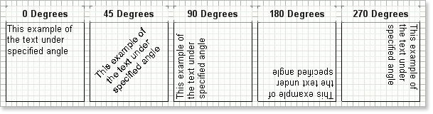 Text rotation is determined with the Text Additional > Angle property. The angle is given in degrees, anticlockwise.