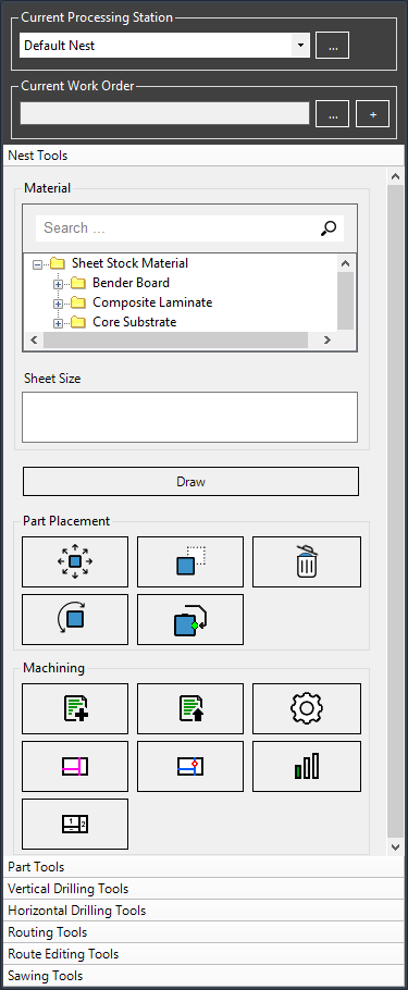 Material Tools – Allows you to select a material and sheet size and then draw a new sheet of the material in the nest.