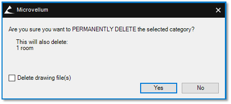 - Copy Selection(s) to Another Category – Selecting this option allows the room to be copied to another Category Folder within the Tree View interface. Select this option and choose the folder that the room is to be copied to in the Select Category interface. A new Room Name needs to be entered. Multiple rooms can be selected and copied to another category at once. The user is given the option of copying the .dwg files along with the database record: