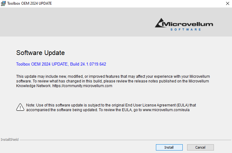 This article covers the steps involved in updating your Microvellum Toolbox Software Installation. Before updating, we recommend reviewing our Pre-Installation Instructions and creating a backup of your data. For information on creating a backup see the Knowledge Base article Microvellum Data Backup Tips.