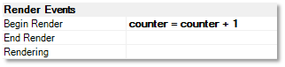 Begin Render Event is called at the beginning of a new group being output. This event can be used for the initialization of data or variables, or for calling certain actions.