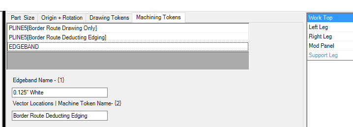 In the part properties, we can add the new Edgeband token to the “Work Top” part.