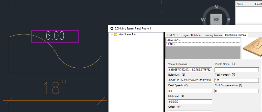 Fig. 06 - Edgeband Token with Vector and Bulge Details