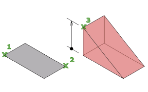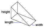 Creates a wedge with length, width, and height values you specify. The length corresponds to the X-Axis, the width to the Y-Axis, and the height to the Z-Axis. If you pick a point to specify the length, you also specify the rotation in the XY plane.