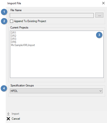 - Selecting Append to Existing Project will add the information to an existing project as opposed to creating a completely new project.